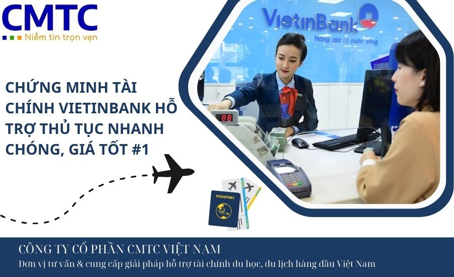 Trong việc chuẩn bị tài chính cho kế hoạch du học hoặc du lịch, chứng minh khả năng tài chính là bước quan trọng giúp bạn thực hiện những dự định một cách suôn sẻ và an tâm. Với sự hỗ trợ của Ngân hàng TMCP Công Thương Việt Nam - Vietinbank, bạn có thể chứng minh tài chính một cách đáng tin cậy và hiệu quả. Trong bài viết này, CMTC Việt Nam sẽ cùng tìm hiểu về Chứng minh tài chính Vietinbank hỗ trợ thủ tục nhanh chóng, giá tốt #1 khi muốn thực hiện kế hoạch du học và du lịch.