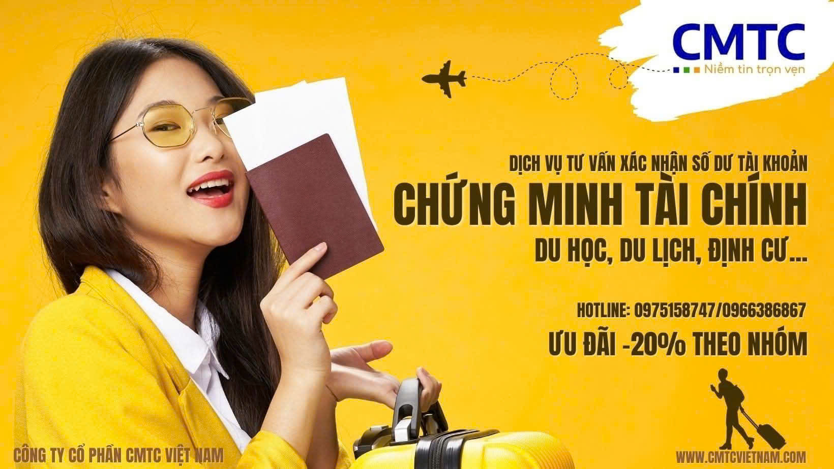 Một trong những yêu cầu quan trọng khi xin visa du lịch, du học hay làm việc, định cư tại nước ngoài là chứng minh khả năng tài chính của bản thân. Để giúp quý khách hàng hoàn thành thủ tục này một cách nhanh chóng và hiệu quả, chúng tôi tự hào cung cấp dịch vụ chứng minh tài chính chuyên nghiệp và đáng tin cậy. Hãy để CMTC Việt Nam giúp bạn hoàn tất mọi thủ tục một cách dễ dàng và tiện lợi nhất thông qua bài viết Dịch vụ chứng minh tài chính - Bảng giá mới nhất 2025 nhé.