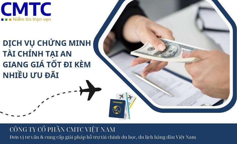 CMTC Việt Nam cung cấp dịch vụ Chứng minh tài chính cho khách hàng tại tỉnh An Giang. Dịch vụ này giúp khách hàng chuẩn bị các tài liệu chứng minh khả năng tài chính cá nhân hoặc doanh nghiệp khi làm thủ tục xin visa đi nước ngoài.