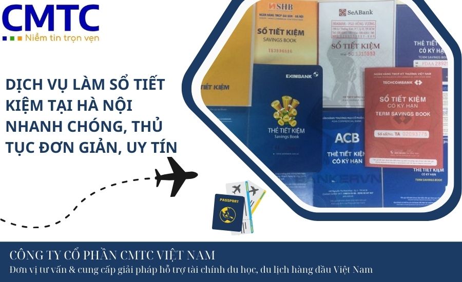 Khi nhu cầu về đầu tư và tiết kiệm ngày càng phát triển, việc tìm kiếm dịch vụ làm sổ tiết kiệm tại Hà Nội trở nên cần thiết hơn bao giờ hết. Để thực hiện kế hoạch tài chính và đảm bảo an toàn cho tài sản, sự hỗ trợ từ các đơn vị chuyên nghiệp không chỉ giúp tiết kiệm thời gian mà còn mang lại sự an tâm cho khách hàng. Bài viết dưới đây sẽ được CMTC Việt Nam đem đến cho bạn những thông tin cần thiết nhất về Dịch vụ làm sổ tiết kiệm tại Hà Nội nhanh chóng, thủ tục đơn giản, uy tín nhé.