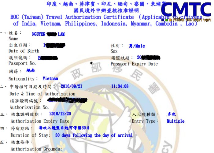 Nếu bạn đáp ứng đủ các điều kiện quy định, bạn sẽ được cấp "Certificate" cho phép nhập cảnh Đài Loan nhiều lần, với thời gian lưu trú tối đa là 14 ngày trong khoảng thời gian sử dụng là 3 tháng.