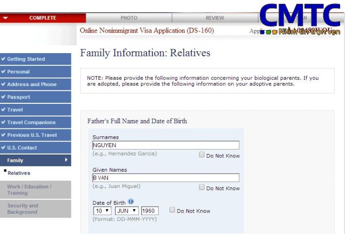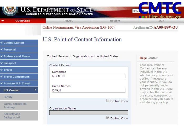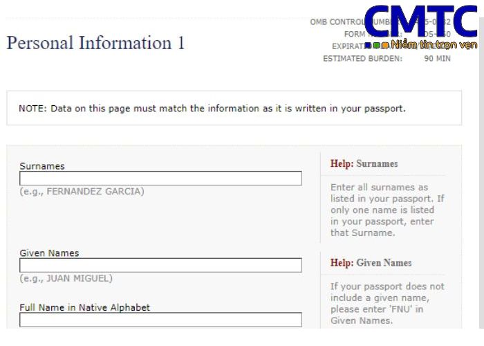 Tiến hành điền thông tin cá nhân trong đơn xin visa Mỹ.