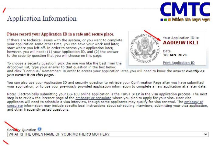 Ghi nhớ mã số: Nếu bạn cần rời khỏi mà chưa hoàn thành, hãy ghi lại mã số “Application ID” nằm ở góc trên bên phải.