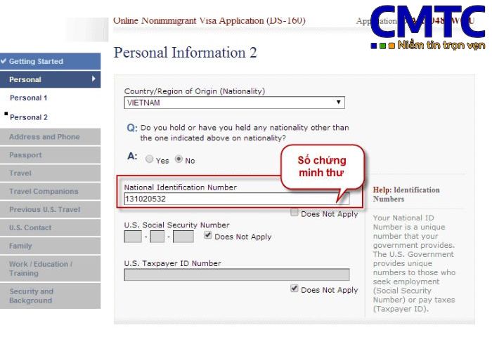 National Identification Number (Số CMND/CCCD): Cung cấp số CMND hoặc CCCD của bạn.