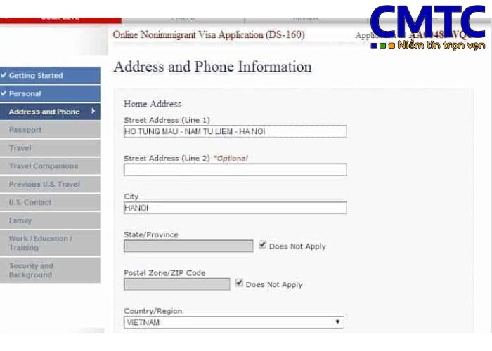 Home Address (Địa chỉ nhà): Cung cấp địa chỉ nơi bạn cư trú trong thời gian chuẩn bị hồ sơ. Sử dụng dấu gạch nối để phân tách số nhà, tên đường, xã/phường, tỉnh/thành phố.