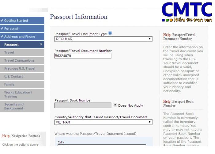 Passport Book Number (Số sổ lưu hộ chiếu): Chọn "Does not apply" (Không áp dụng).