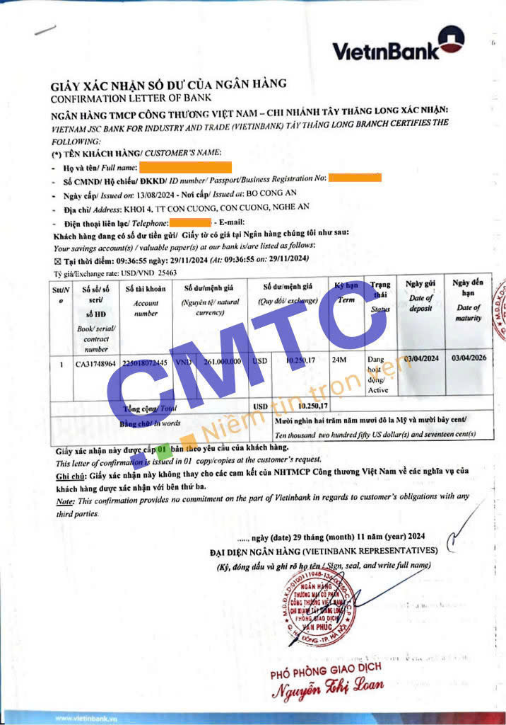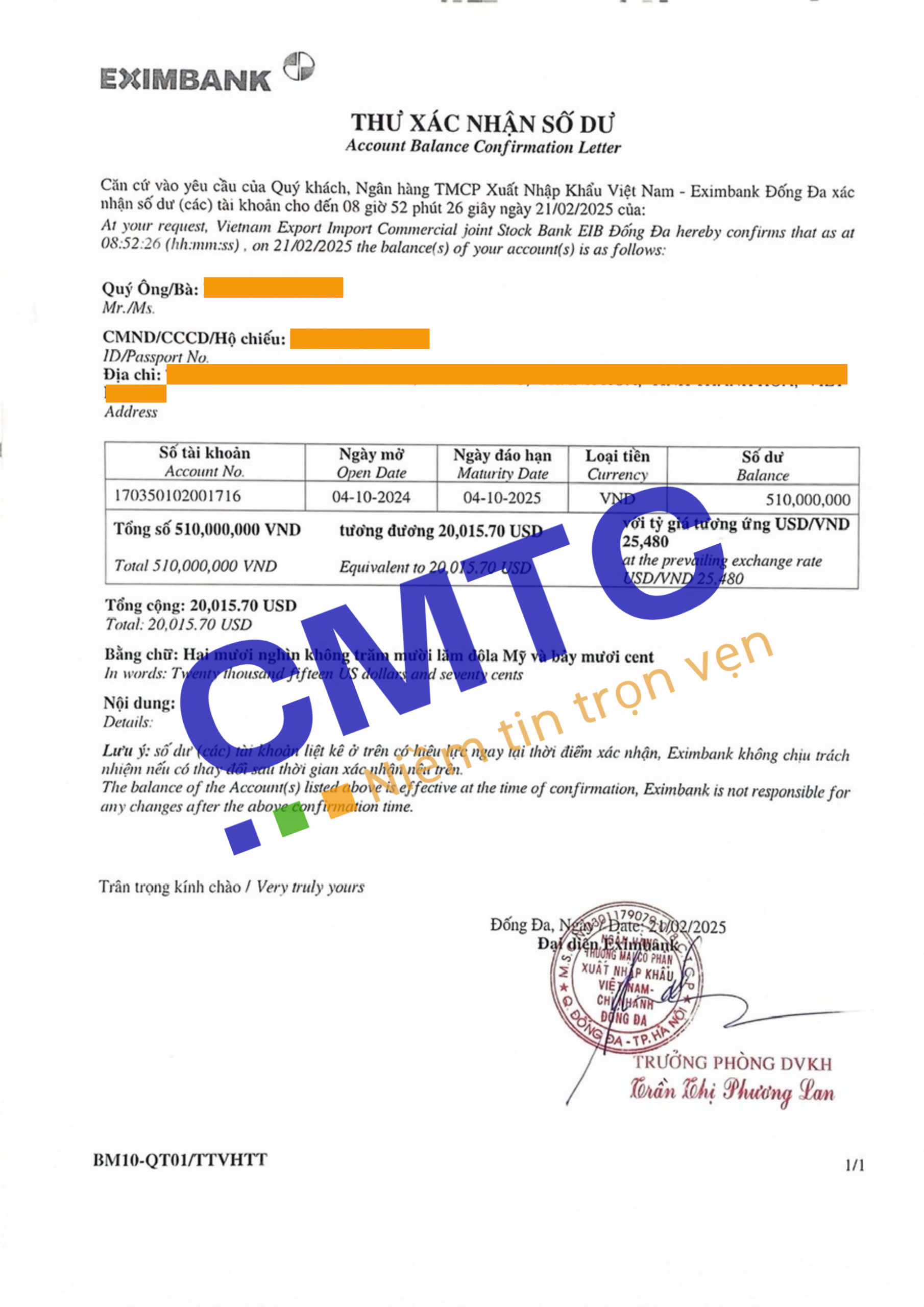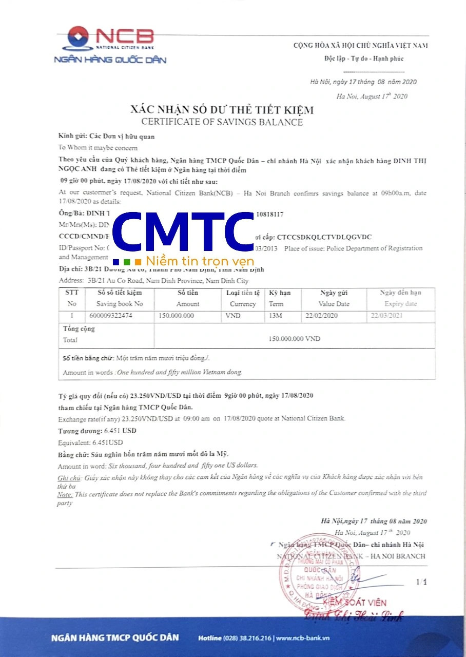 CMTC Việt Nam là một địa chỉ uy tín và chuyên nghiệp trong lĩnh vực cung cấp dịch vụ chứng minh tài chính. Chúng tôi cam kết mang đến cho khách hàng những giải pháp tài chính hiệu quả và đáng tin cậy, giúp họ thuận lợi trong quá trình xin visa hoặc các thủ tục nhập cảnh khác.