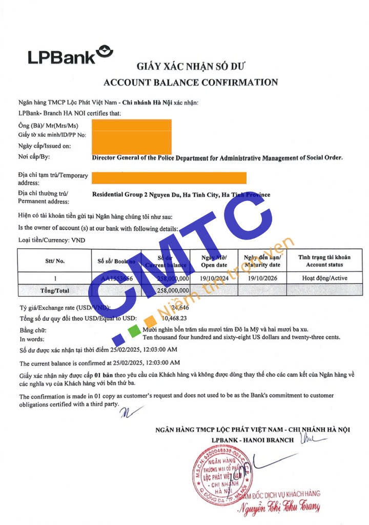 Mẫu giấy chứng minh tài chính bằng cách xác nhận số dư tài khoản