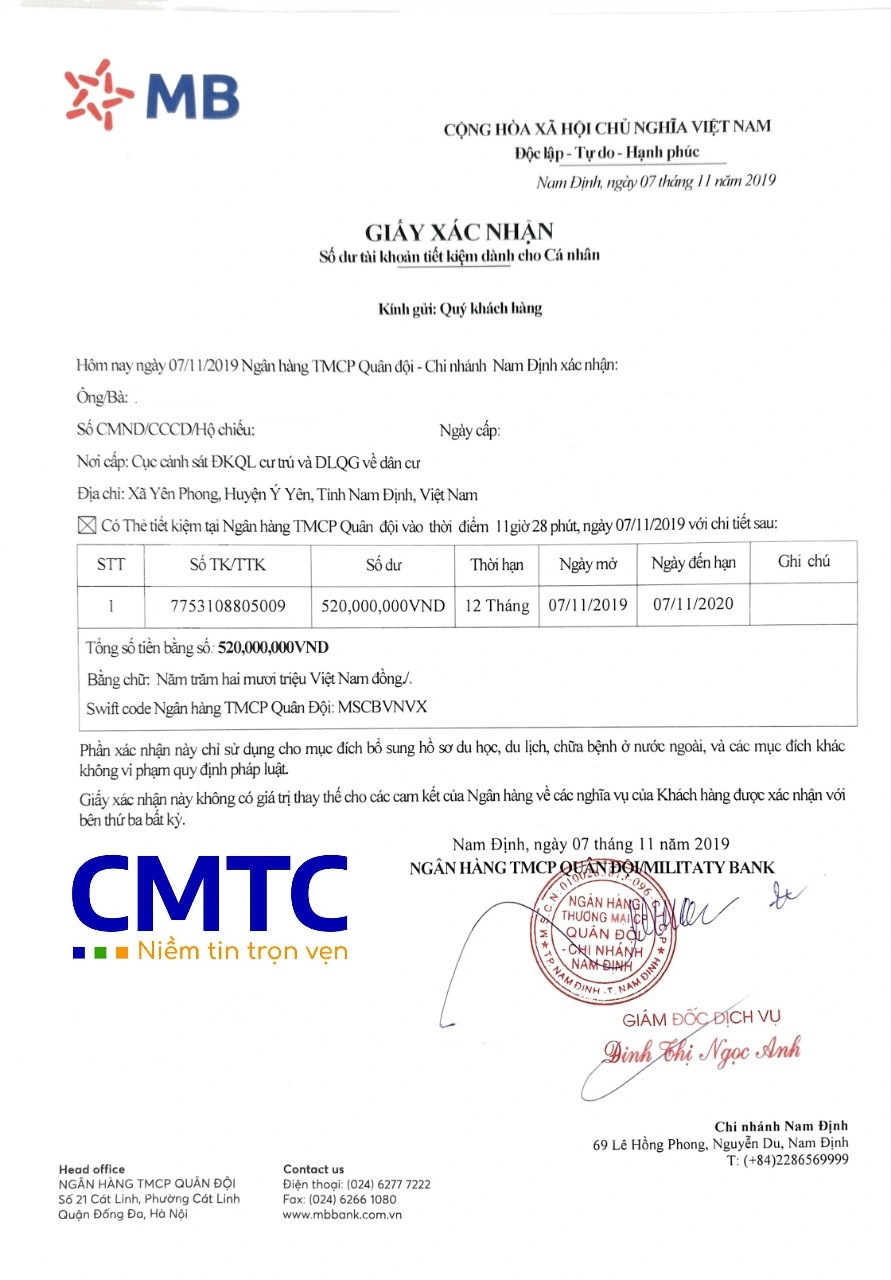 Chứng minh tài chính bằng sổ tiết kiệm và giấy xác nhận số dư tài khoản