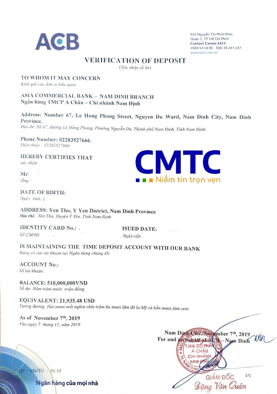 Ngân hàng ACB (Ngân hàng Á Châu) không chỉ cung cấp các sản phẩm tiết kiệm đa dạng và linh hoạt mà còn đảm bảo cho khách hàng sự an tâm về lãi suất và dịch vụ. Đặc biệt, việc làm giấy xác nhận số dư từ sổ tiết kiệm cũng là một yêu cầu cần thiết trong nhiều trường hợp, như xin visa hay vay vốn. CMTC Việt Nam sẽ giới thiệu đến bạn Mẫu sổ tiết kiệm và giấy xác nhận số dư tiền gửi ngân hàng ACBank, giúp bạn dễ dàng thực hiện những thủ tục tài chính quan trọng này.