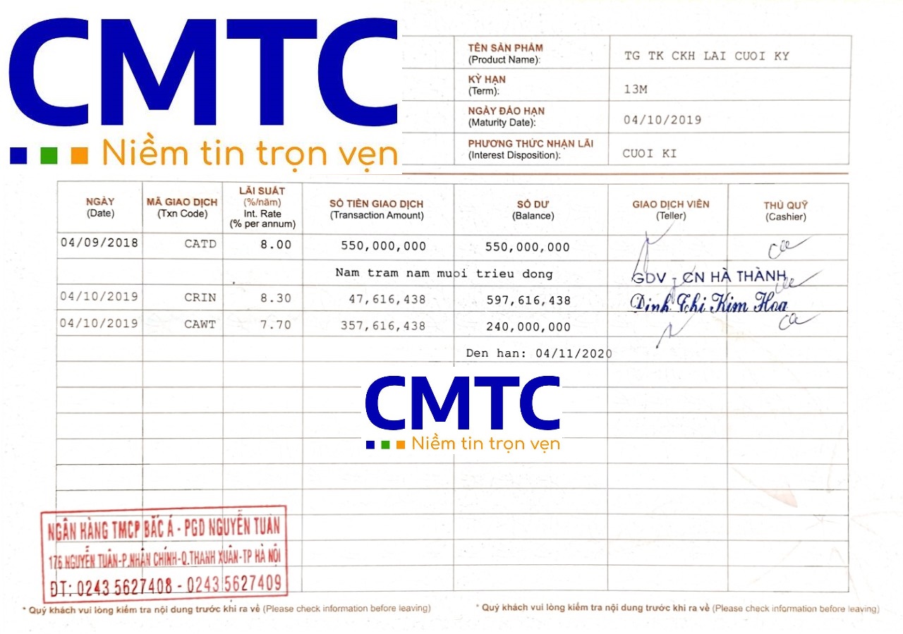 CMTC Việt Nam cung cấp dịch vụ chứng minh tài chính, mở sổ tiết kiệm tại Ngân hàng Bắc Á Bank trên toàn quốc. Hãy liên hệ ngay với chúng tôi để được tư vấn miễn phí!