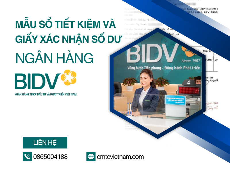 Tại Ngân hàng Đầu tư và Phát triển Việt Nam (BIDV), dịch vụ cấp giấy xác nhận số dư không chỉ giúp khách hàng minh bạch hóa tình hình tài chính mà còn hỗ trợ trong nhiều giao dịch quan trọng, như vay vốn, du học, hay thực hiện các thủ tục liên quan đến pháp lý. Trong bài viết này, CMTC Việt Nam cùng tìm hiểu chi tiết về Mẫu sổ tiết kiệm và giấy xác nhận số dư tiền gửi ngân hàng BIDV nhằm giúp bạn dễ dàng tiếp cận và tận dụng tối đa lợi ích mà BIDV mang lại.
