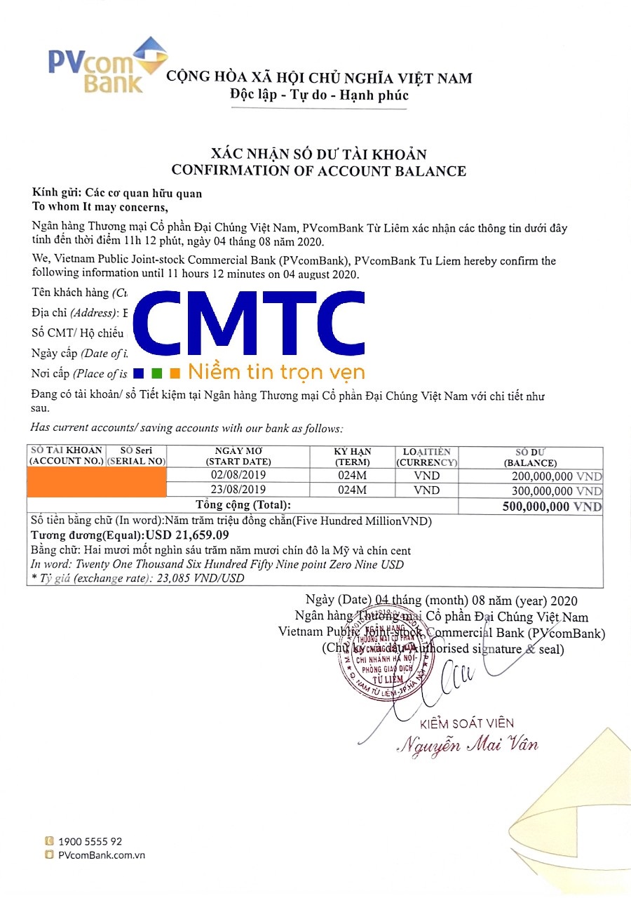 CMTC Việt Nam cung cấp dịch vụ chứng minh tài chính, mở sổ tiết kiệm tại Ngân hàng TMCP Đại Chúng Việt Nam (PVcomBank) trên toàn quốc. Hãy liên hệ ngay với chúng tôi để được tư vấn miễn phí!