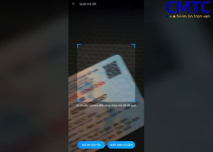 Quét mã QR: Hướng camera về phía mã QR trên CCCD để quét.