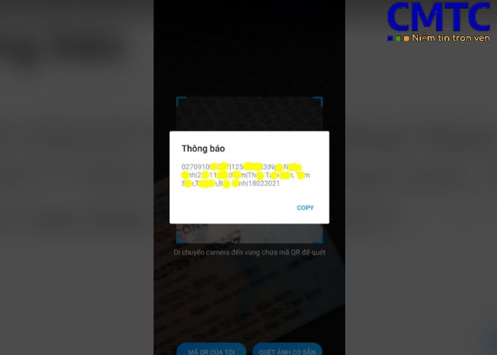 Khi quét thành công, thông tin cá nhân của bạn sẽ được hiển thị trên điện thoại, bao gồm: