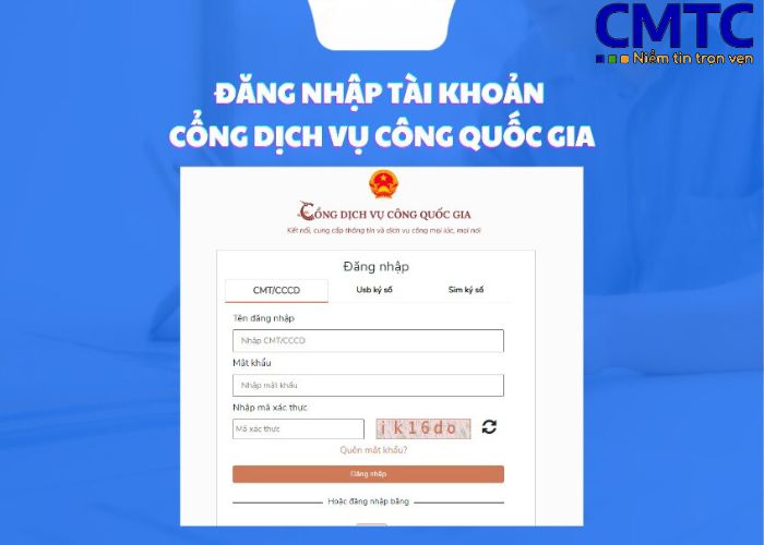 - Bước 3: Đăng nhập bằng tài khoản cổng dịch vụ công quốc gia