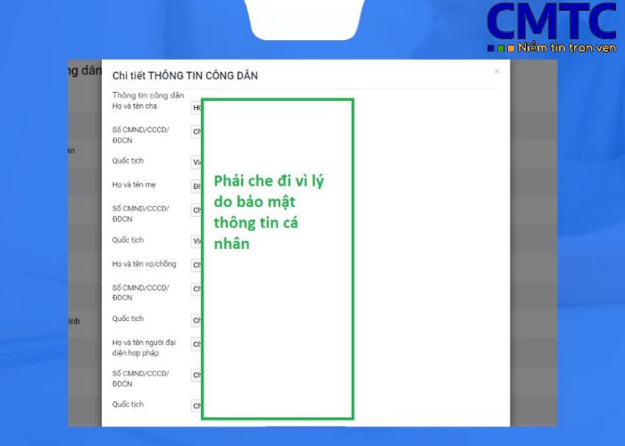 Chọn mục Thông tin công dân trên màn hình. Hệ thống sẽ yêu cầu bạn nhập các thông tin bắt buộc, bao gồm: