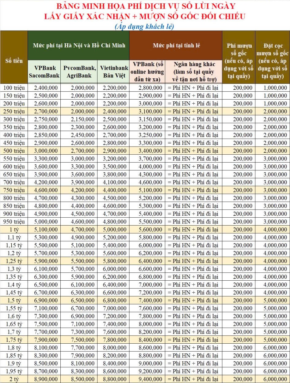 - Trường hợp chưa đủ tiền mặt hoặc không kịp nuôi sổ: Bạn tham khảo phí dịch vụ sổ tiết kiệm lùi ngày như sau